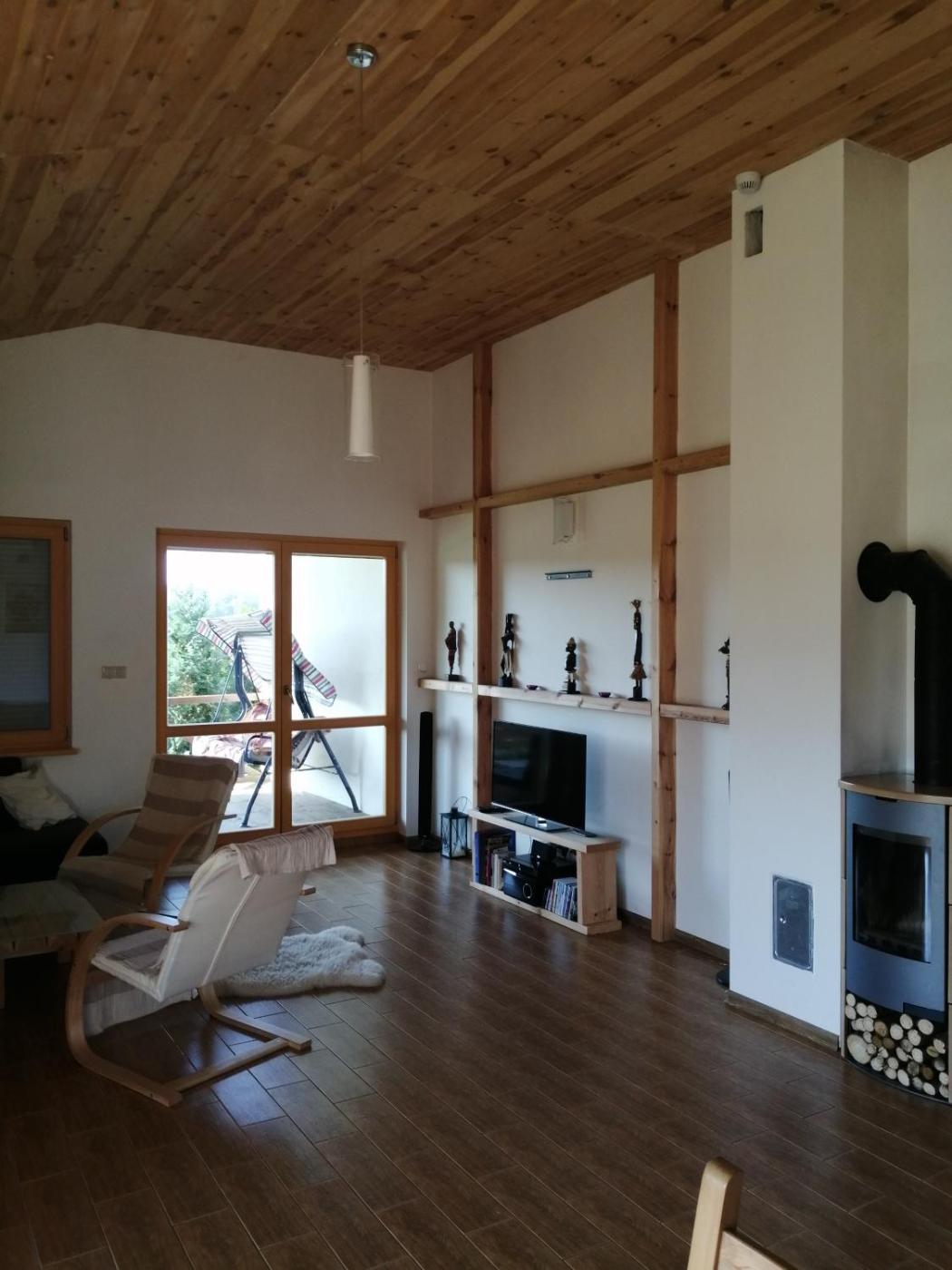 Dom z 2 sypialniami. The fireplace is the standout feature of this holiday home. Boasting a private entrance, this holiday home comes with 1 living room, 2 separate bedrooms and 1 bathroom with a bath and a hairdryer. Guests will find a stovetop, a refrigerator, kitchenware and a microwave in the well-fitted kitchen. The holiday home also includes a barbecue. The unit has soundproof walls, garden views, a terrace and winechampagne is available for guests. The unit has 3 beds. Dom wakacyjny - 5 osobowy. Powierzchnia pokoju ok.: 108 mkw.