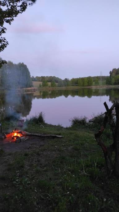 Leśna Chatka z prywatnym stawem, jezioro, sauna - Drzewiany