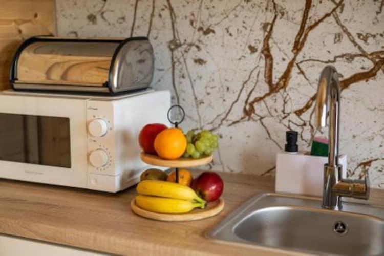 Dom wakacyjny z 1 sypialnią. This holiday home comprises 1 living room, 1 separate bedroom and 1 bathroom with a shower and a hairdryer. The fully equipped kitchen features a refrigerator, a microwave and an electric kettle. The holiday home provides a washing machine, a seating area, a dining area, a TV with cable channels, as well as garden views. The unit offers 3 beds. Dom wakacyjny - 4 osobowy. Powierzchnia pokoju ok.: 25 mkw.
