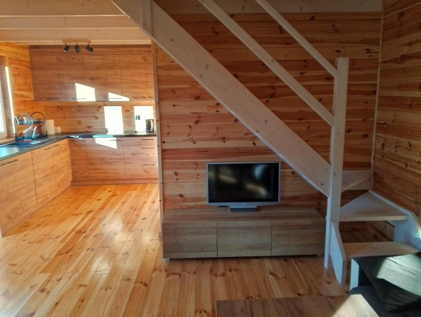 Dom z 2 sypialniami. In the well-fitted kitchen, guests will find a stovetop, a refrigerator, kitchenware and an electric kettle. This holiday home has air conditioning, a dining area, a flat-screen TV and a terrace. The unit has 3 beds. Dom wakacyjny - 6 osobowy. Powierzchnia pokoju ok.: 42 mkw.